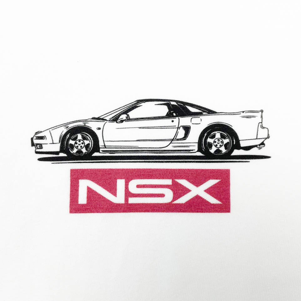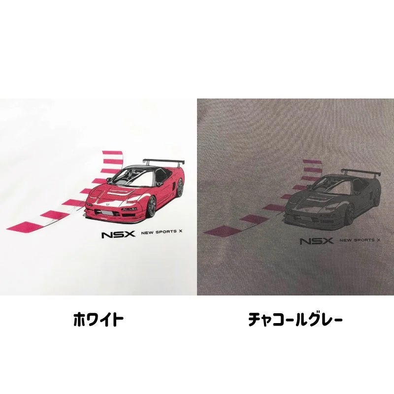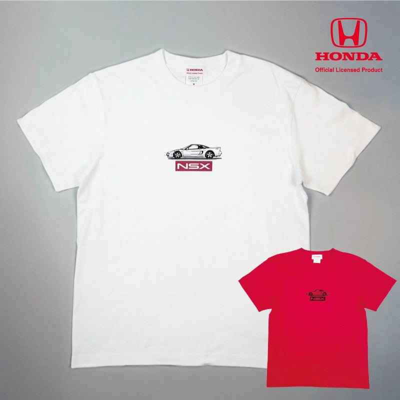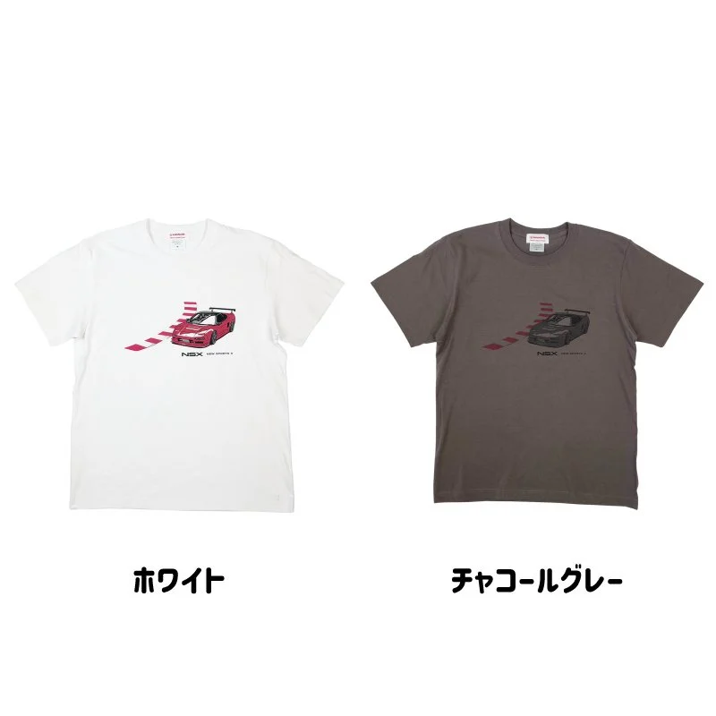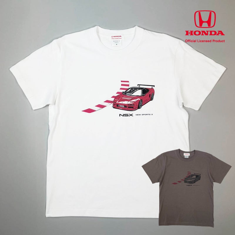 Tシャツは旧車の中でも人気の高い Honda NSX (NA1型) がモチーフとなっており、NSX のかっこよさを味わえるイラストに仕上がっている。サーキットを駆け抜けるNSXのイラストと、NSXのサイドビューがシンプルに描かれたイラストの2デザイン。