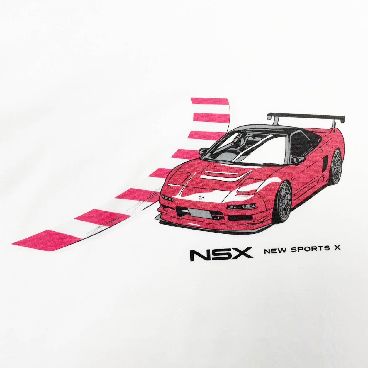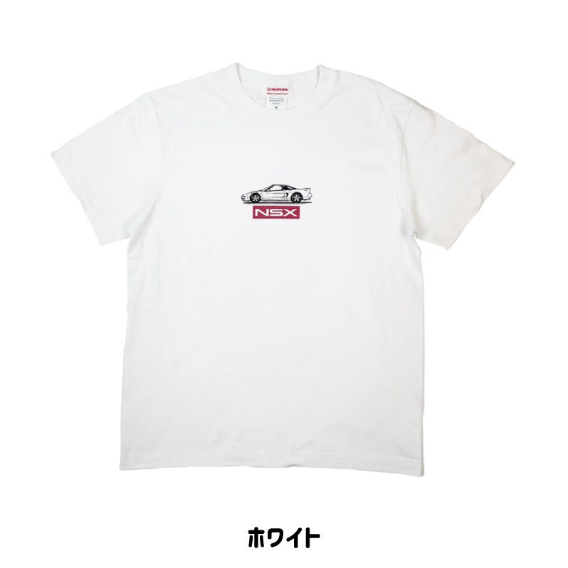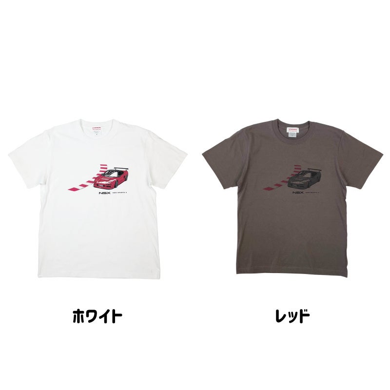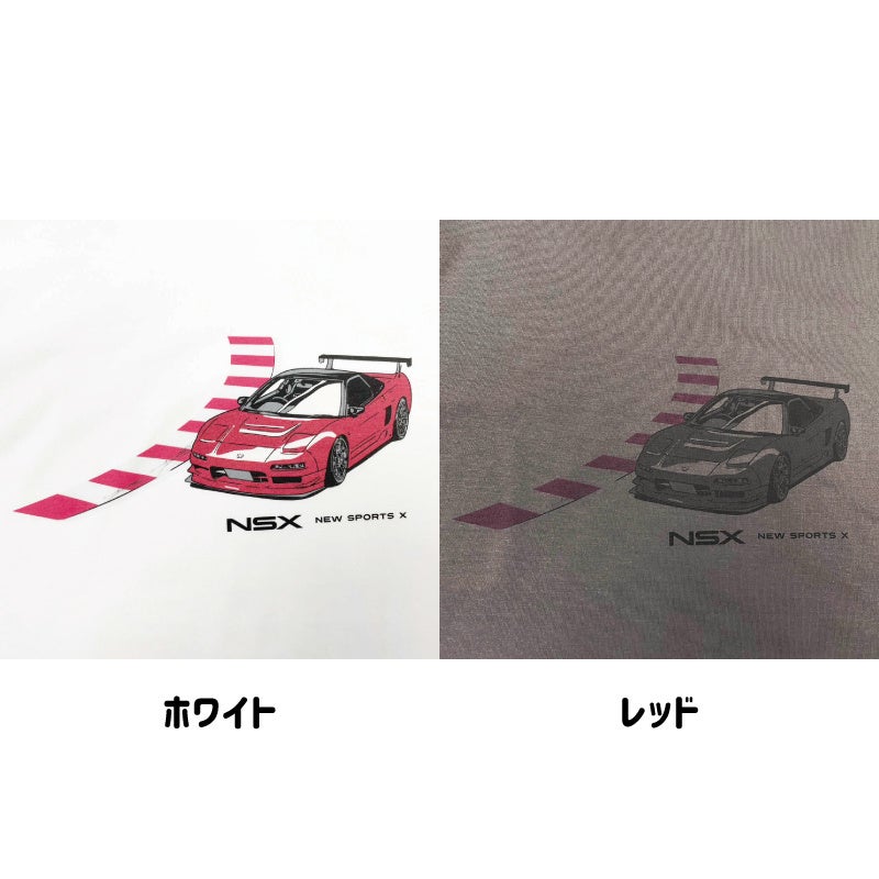 Tシャツは旧車の中でも人気の高い Honda NSX (NA1型) がモチーフとなっており、NSX のかっこよさを味わえるイラストに仕上がっている。サーキットを駆け抜けるNSXのイラストと、NSXのサイドビューがシンプルに描かれたイラストの2デザイン。