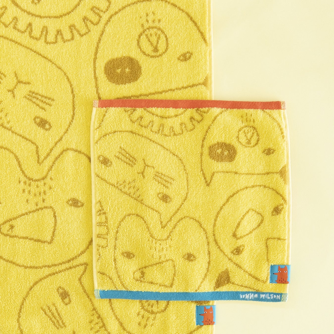 クリーチャーたちの顔がぎゅうっと詰まったにぎやかで楽しいタオルです。ドナらしい元気なイエローのカラーで登場です。