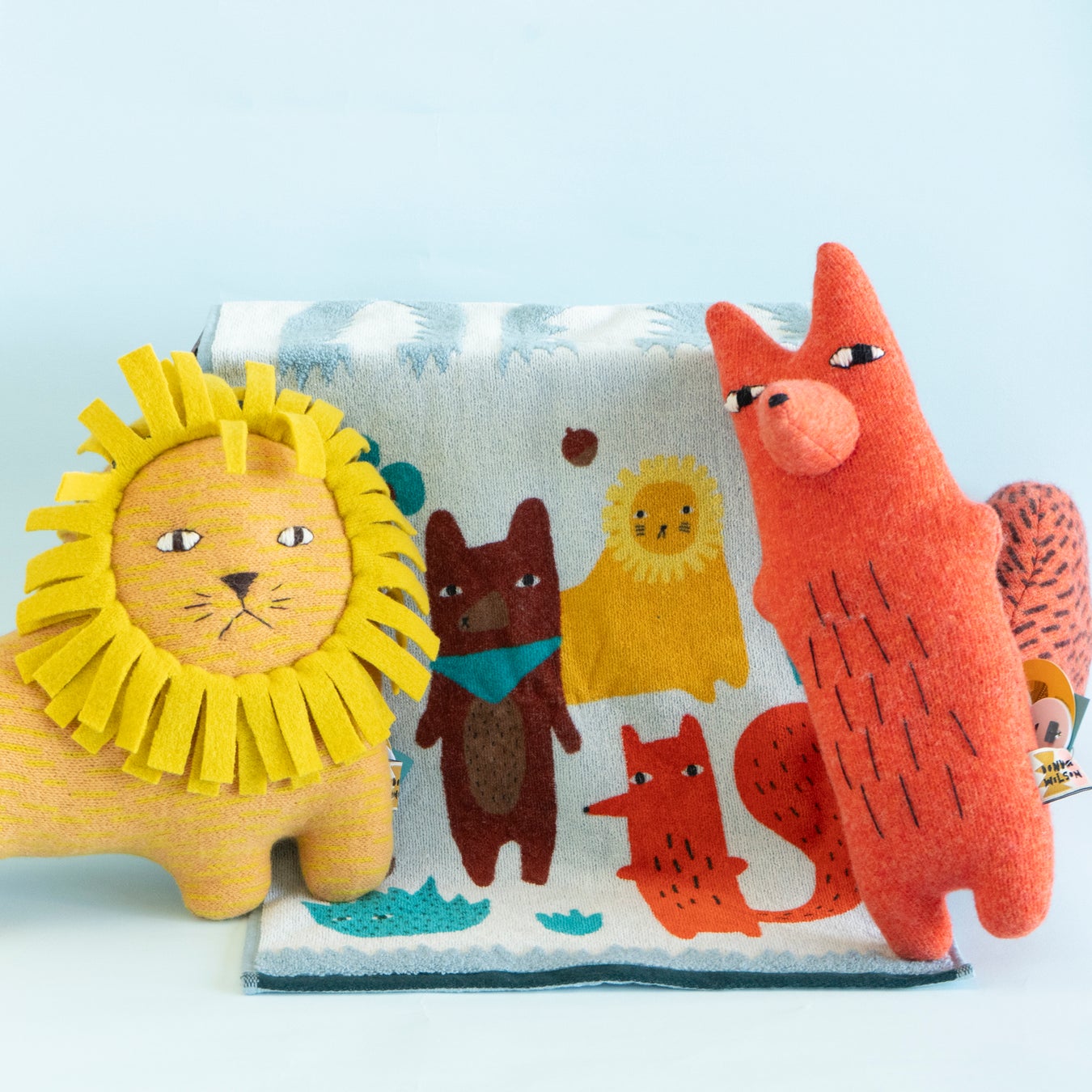 2002年よりドナ・ウィルソンが製作しているニットのいきものたち(クリーチャー)の中でも人気の「キツネリスのシリル」、「モノクロのねこ」のしっぽがはみ出したデザインや、さまざまなクリーチャーが集合したデザインのタオルがミニ、フェイスの2サイズで展開中。