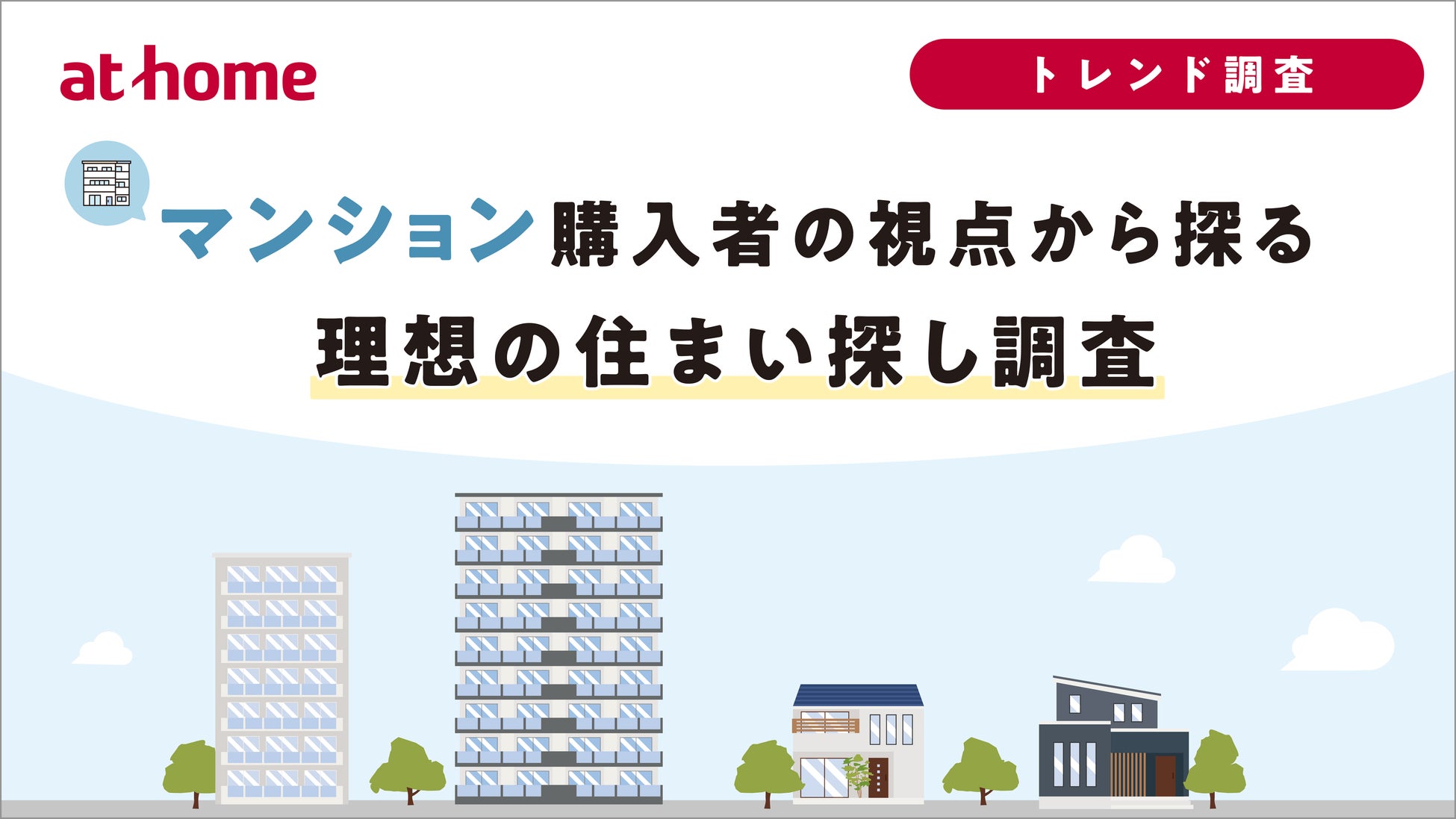 アットホームでは本調査をはじめ、賃貸物件に住む人や一戸建て・マンションを購入した人などに住まいに関する調査を定期的に行っています。この他に「同棲カップルの住まい探しに関する調査」や『不動産のプロに聞いた!「資産性の高いマンションか見極めるポイント」ランキング』など不動産業界のトレンドに合わせた調査も実施しています。過去の調査結果など詳細につきましては、ぜひお問い合わせください。