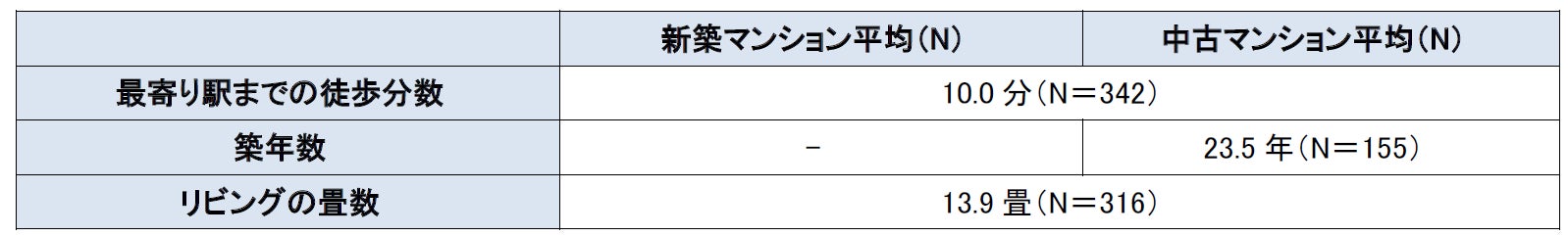 購入したマンションの最寄り駅からの徒歩分数は、平均10.0分でした。また、中古マンション購入者に築年数を聞いたところ、平均23.5年でした。築20年以上の中古マンションを購入している人も多いことが分かりました。