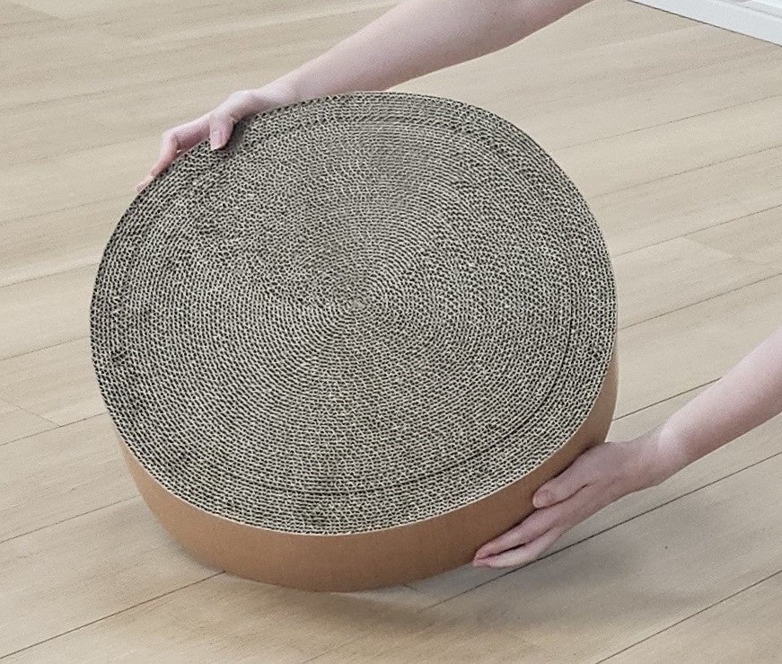 裏返して押し込むだけで、もう一度使える!コメリオリジナルブランド「ペットアミ」からエコな新商品「猫の爪とぎ 両面スクラッチ 丸型」が登場