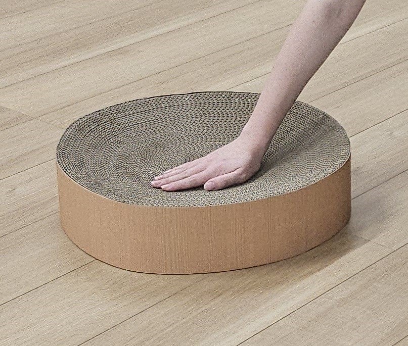 猫ちゃんにとって必要不可欠な爪とぎ。中でも、段ボール製の爪とぎは手軽に購入できて飼い主さんに人気です。一方で、すぐにボロボロになってしまう、デザインがお部屋のインテリアと合わない、など段ボール製だからこそのデメリットもあります。そんな飼い主さんの困りごとを解決する「Pet ami 猫の爪とぎ 両面スクラッチ 丸形 42cm」をご紹介いたします。