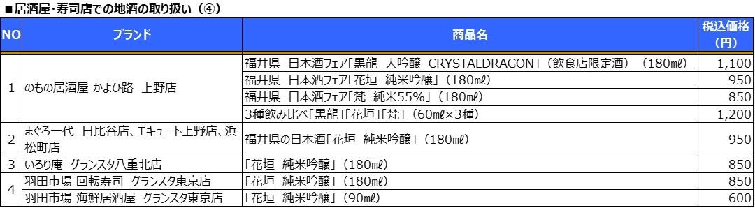 ④ 福井県の地酒の提供