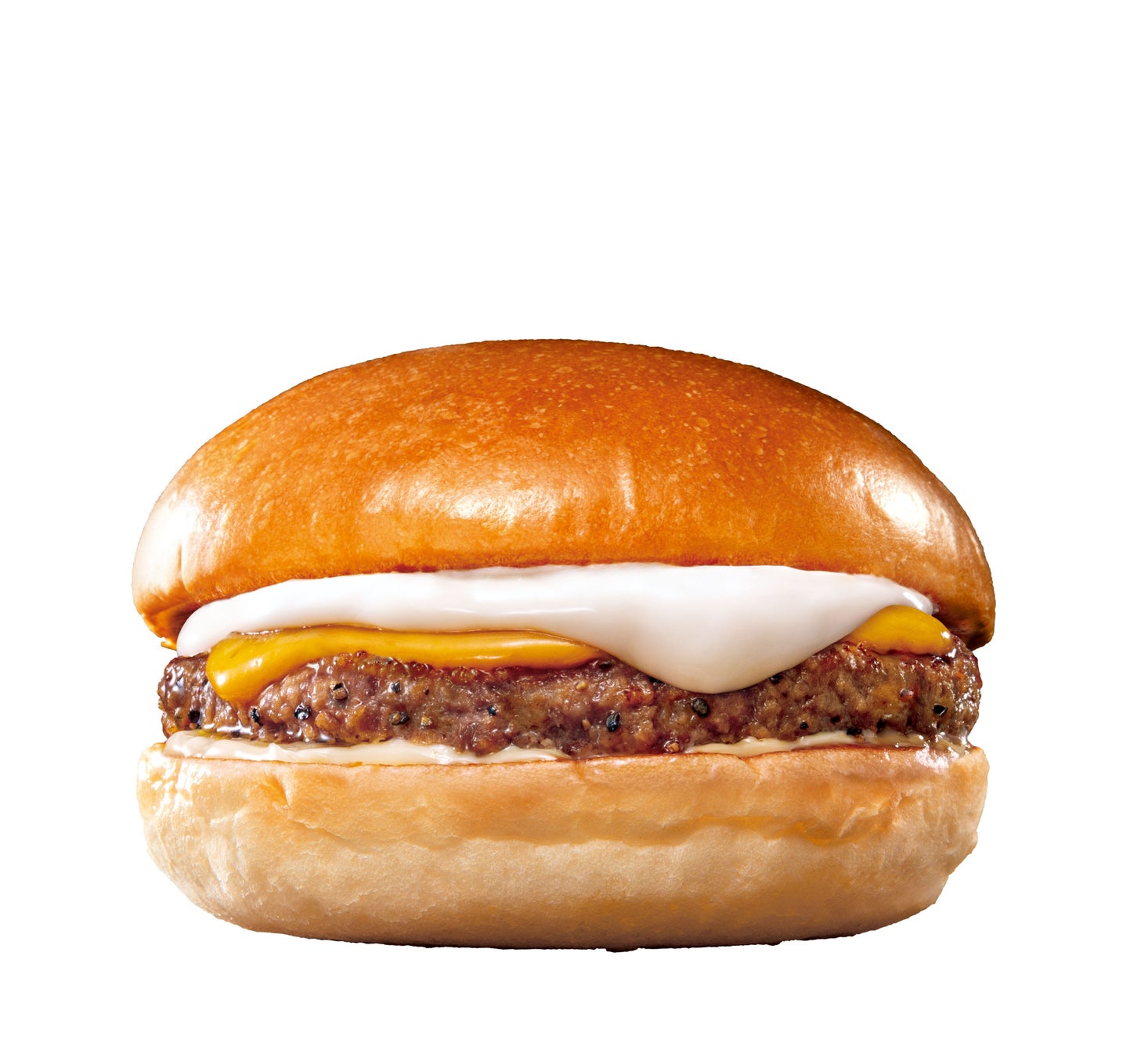 商品概要:牛肉100%パティに、レッドチェダーチーズと4種類(ゴーダ・チェダー・マスカルポーネ・パルメザン)のチーズをブレンドしたとろ~りチーズソースなどを合わせ、ふんわりもっちり食感が特長のバンズで挟んだ「絶品チーズバーガー」のお得なランチセットです。