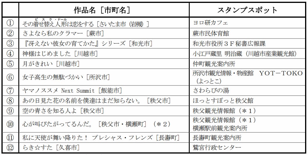 *1 秩父観光情報館は⑨、⑩の2作品のスタンプスポットとなっています。