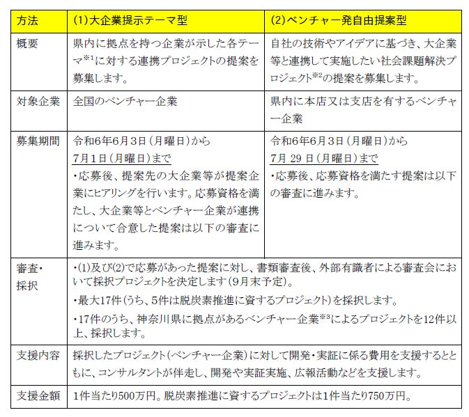 ※2 「(2)ベンチャー発自由提案型」については、社会課題の例として、令和6年3月に策定した「新かながわグランドデザイン」における各プロジェクトの取組を御参照ください。