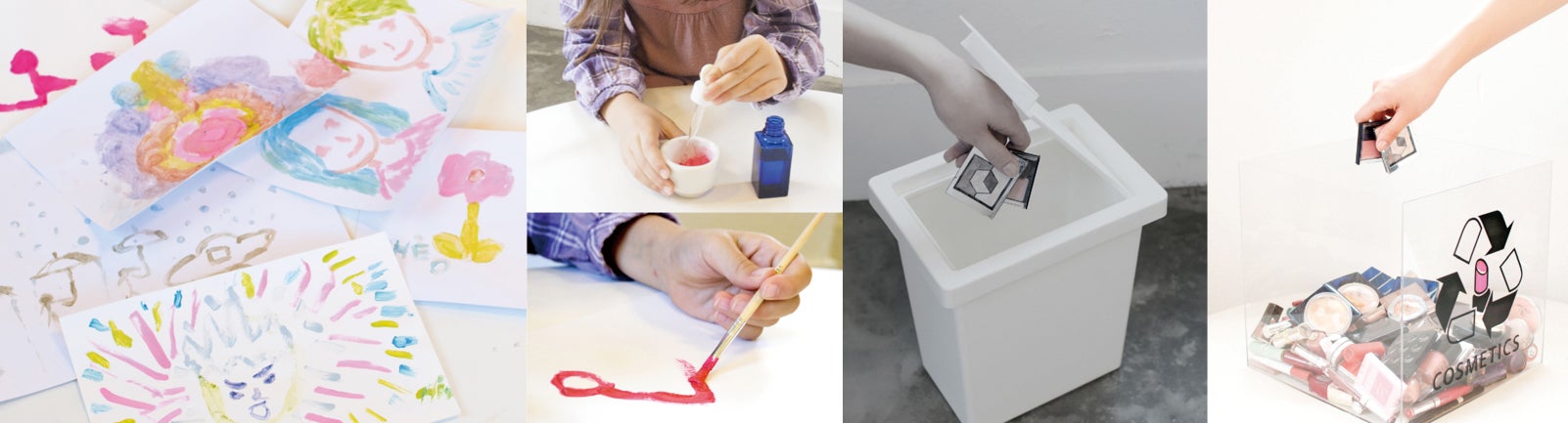 プラスコスメプロジェクトは不要になり廃棄されている多くの化粧品を画材として再利用したり、リサイクル・アップサイクル作品に変える方法を紹介したり、化粧品の環境意識を変え、コスメの循環社会を提案する社会貢献活動です。