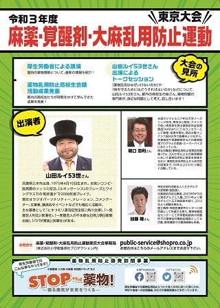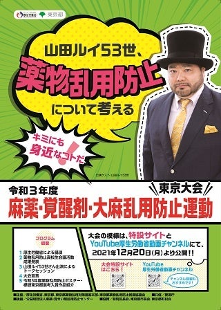 薬物乱用根絶を呼びかける目的で、厚生労働省と東京都が実施した「令和3年度麻薬・覚醒剤・大麻乱用防止運動東京大会」(無観客開催)の動画が、12月20日(月)午後2時から大会特設サイトなどで配信開始となります。