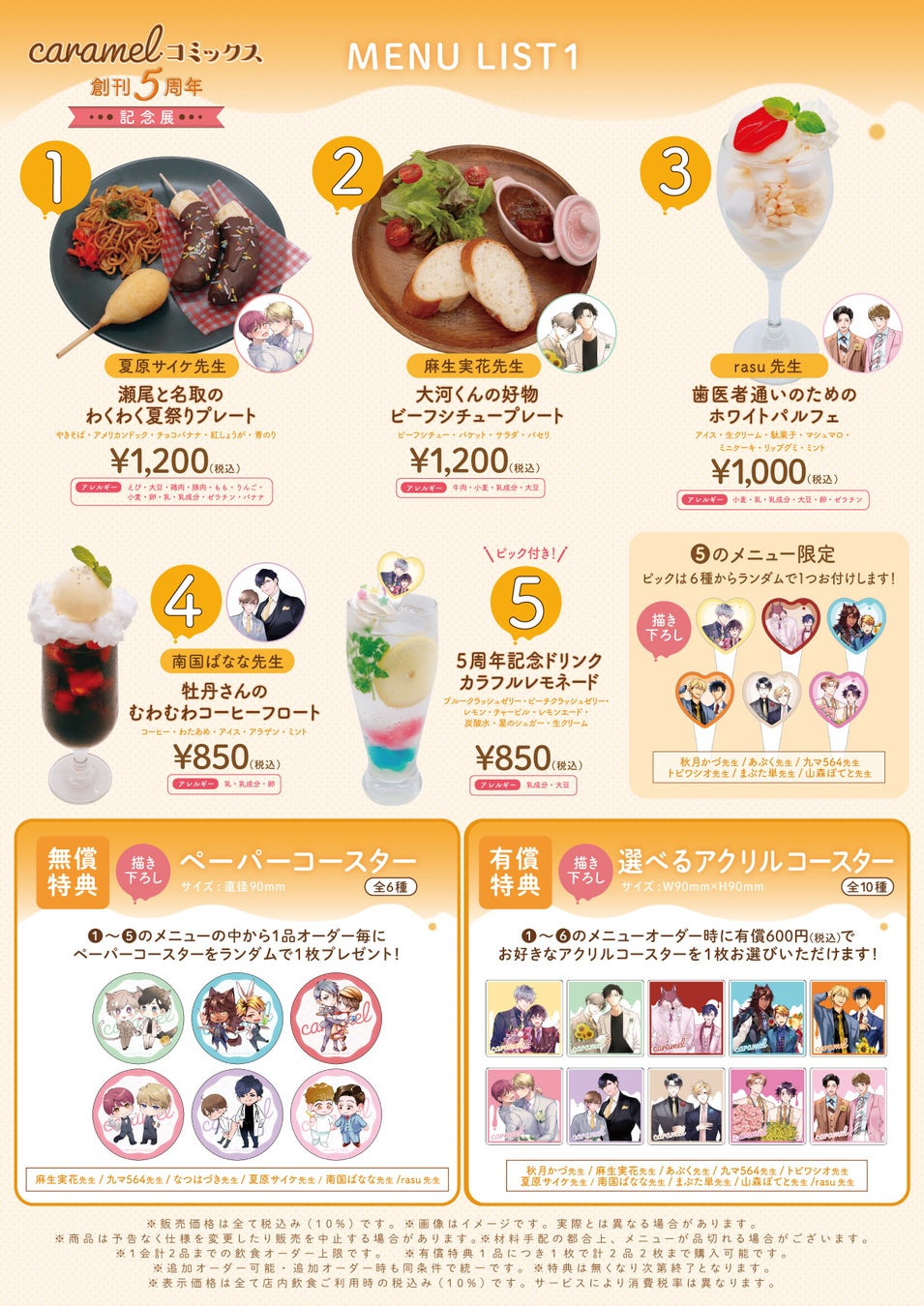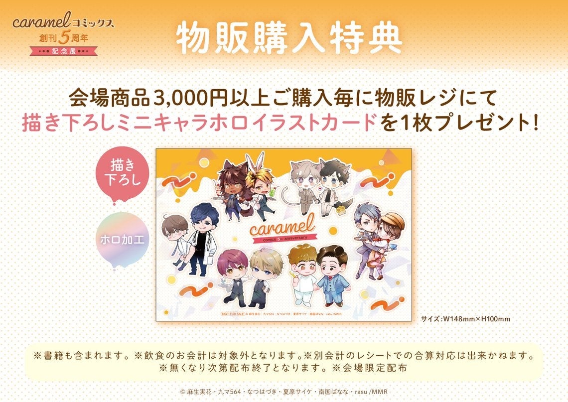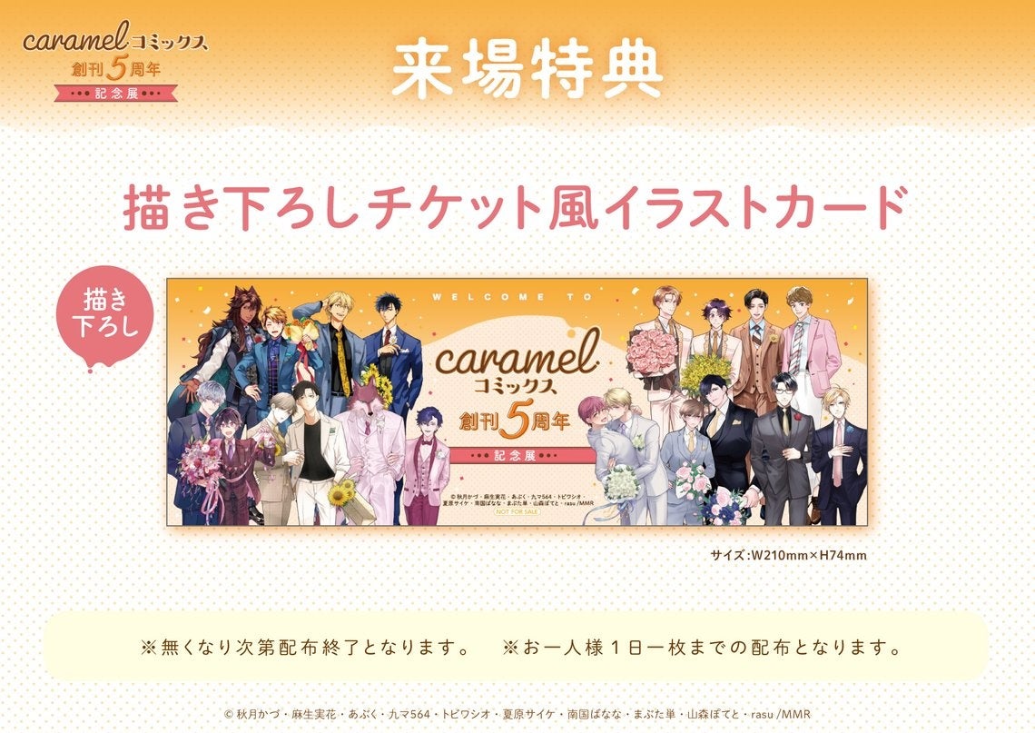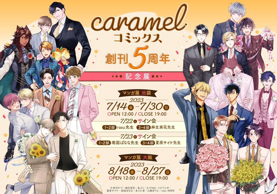 caramel(カラメル)コミックスの創刊5周年を記念して、マンガ展にて記念展を開催いたします!コラボカフェ・複製原画や等身大パネルの展示・限定描き下ろしオリジナルグッズの販売もございます!