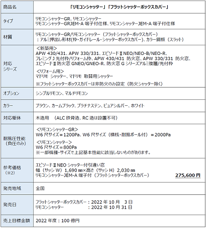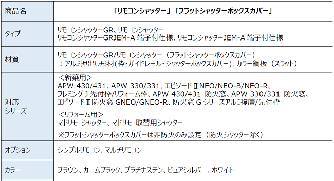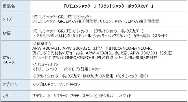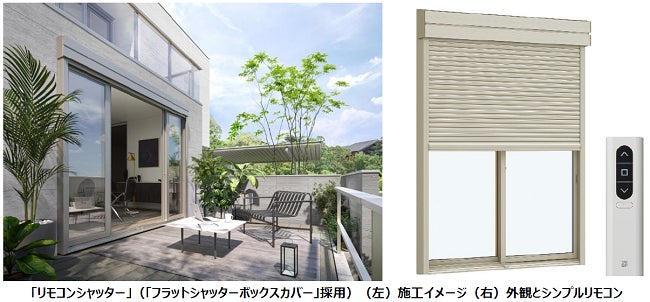 こうした背景より、電動シャッターをご採用いただけるよう利便性やさまざまな効果をより一層訴求するとともに、「リモコンシャッター」の施工性・操作性・利便性の向上を図りリニューアル発売します。また、デザイン面においてもインテリアに馴染むリモコンデザインにリニューアルし、外観においては幅広い住宅デザインにフィットする「フラットシャッターボックスカバー」を投入し採用範囲の拡大を目指します。