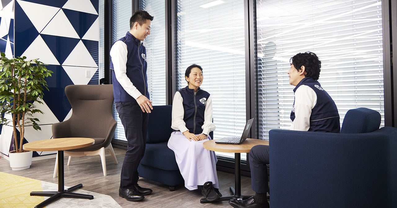 一人当たりの面積を広く取り、ゆとりのある快適な空間を設計しました。照明は、自然光をイメージして朝・昼・夕の時間毎に色温度が自動で変化します。休憩スペースを新たに増設し、木目調の床やテーブル、ソファを配置し、リフレッシュできるようにしました。