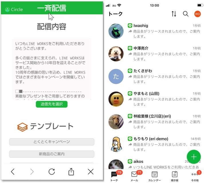 ※1 一斉配信機能は株式会社BELAIRが提供するSaaSサービス「Circle(サークル)」を利用しております。
