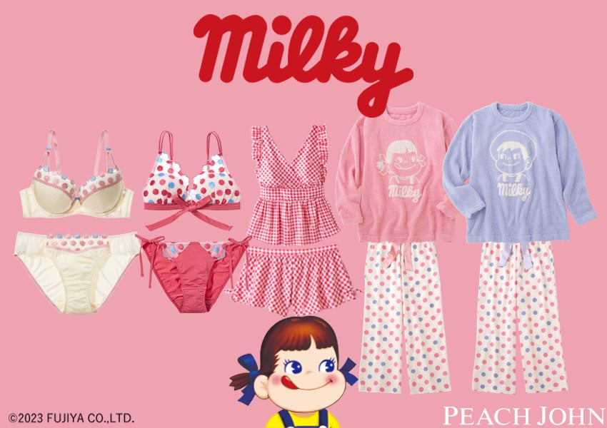 株式会社ピーチ・ジョン(本社:東京都港区/代表取締役社長:杤尾 学)は、キュートなキャラクター“ペコちゃん”でおなじみの、株式会社不二家のロングセラーキャンディ「ミルキー」とのコラボコレクションを、本日2023年1月25(水)12:00にピーチ・ジョン公式通販サイト及び全国の店舗※にて発売しました。※店舗は開店時より販売開始。各店舗の開店時間は異なります。