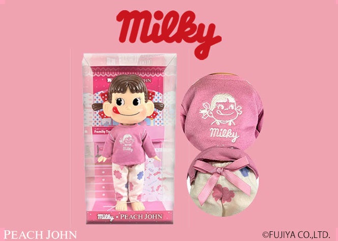 - 不二家ネットショップ限定!ミルキー×ピーチ・ジョン パジャマペコちゃんの人形も登場。