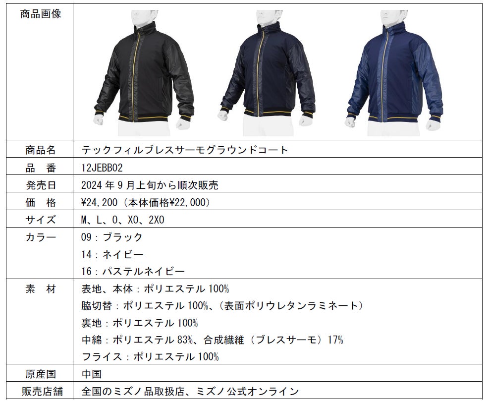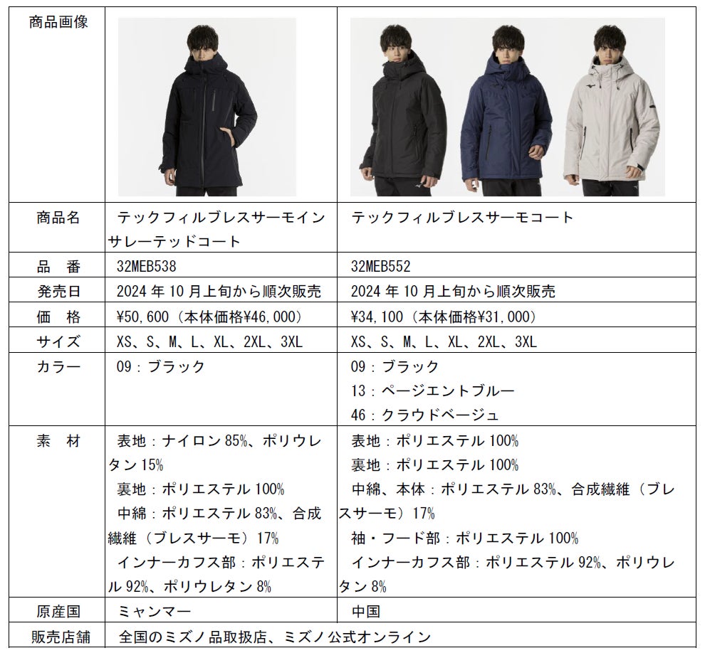 ミズノは、ダウンを超える温かさ※2の新素材『テックフィルブレスサーモ』を開発しました。『テックフィルブレスサーモ』は、ダウンよりも温かい※2上に、濡れても保温性が低下しにくく、気候に左右されにくい保温力のある素材です。