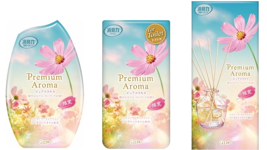 エステー株式会社は、消臭芳香剤「消臭力」のワンランク上の上質な香りをお届けする「消臭力 Premium Aroma(プレミアムアロマ)」シリーズから、少しの儚さを感じる秋にも、軽やかな香りで華やかさを添えてくれる〈ピュアコスモス〉の香りを、数量限定品として新発売します。