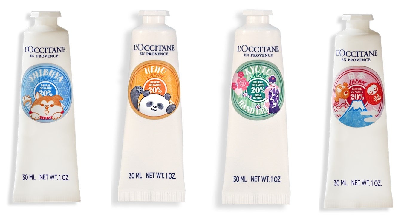 ・渋谷 シアハンドクリーム 30mL 税込1,870円(SHIBUYA TOKYO限定)・上野 シアハンドクリーム 30mL 税込1,870円(上野店限定)・京都 シアハンドクリーム 30mL 税込1,870円(コトチカ京都店、JR京都伊勢丹店、京都大丸店、高島屋京都店のみ限定販売)・JAPAN シアハンドクリーム 30mL 税込1,870円(札幌ステラプレイス店、SHIBUYA TOKYO、ルミネ新宿店、銀座三越店、新宿伊勢丹店、アトレ上野店、 軽井沢プリンス・ショッピングプラザ店、名古屋タカシマヤ1階/4階、ジェイアール京都伊勢丹店、 高島屋京都店、うめだ阪急店、あべのハルカス近鉄店、高島屋大阪店、心斎橋大丸店、アミュプラザ博多店、 博多阪急店)