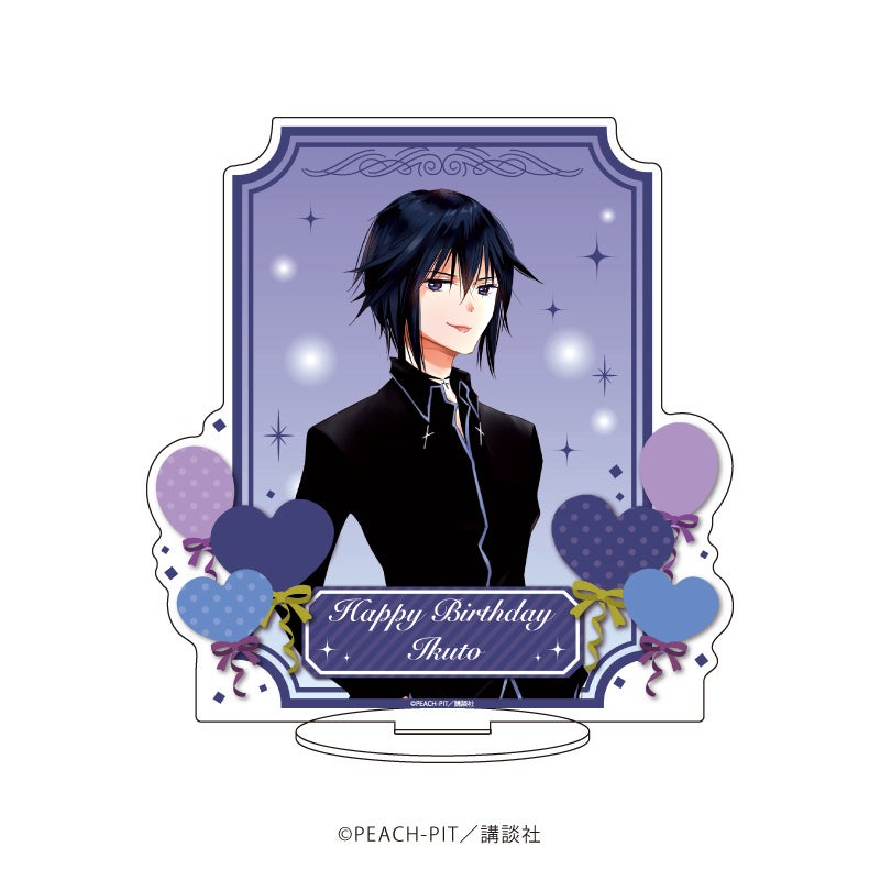 ちょっといたずらっぽい笑みを浮かべるイクトがデザインされたキャラアクリルフィギュアは、およそ15cmのサイズ。お誕生日をお祝いするデザインながらも高級感が感じられる色合いなので、飾りごたえ抜群のアイテムです!