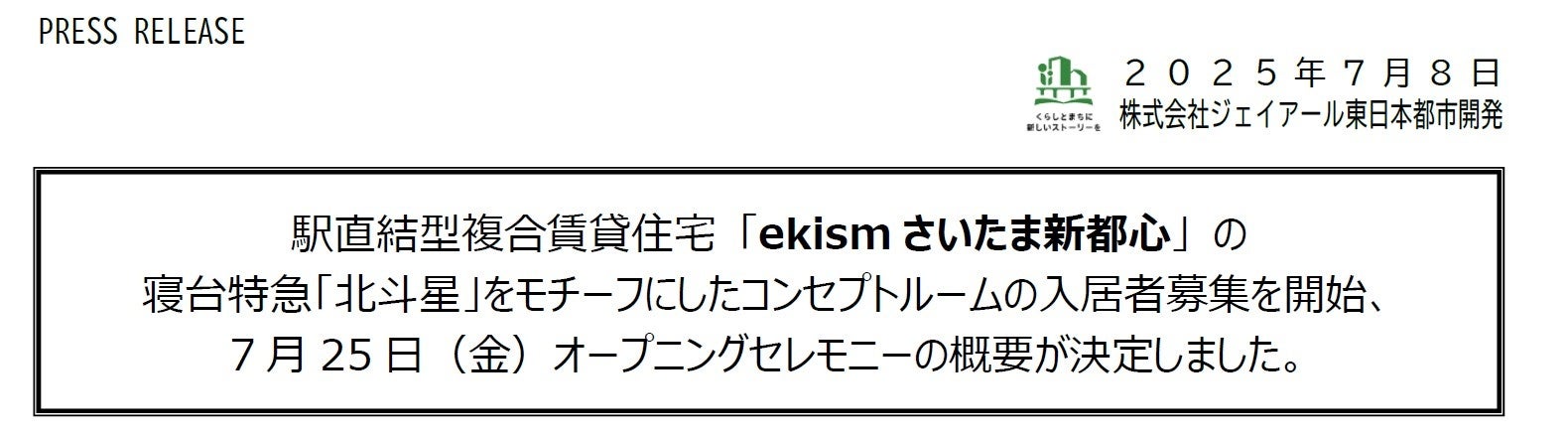 駅直結型複合賃貸住宅 「ekismさいたま新都心」 の寝台特急「北斗星」をモチーフにしたコンセプトルームの入居者募集を開始、7月25日(金)オープニングセレモニーの概要が決定しました。