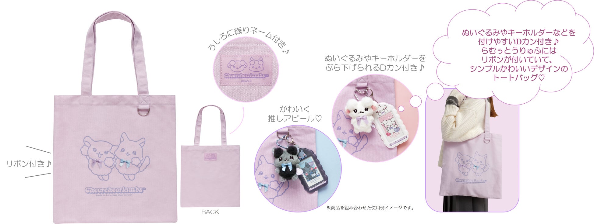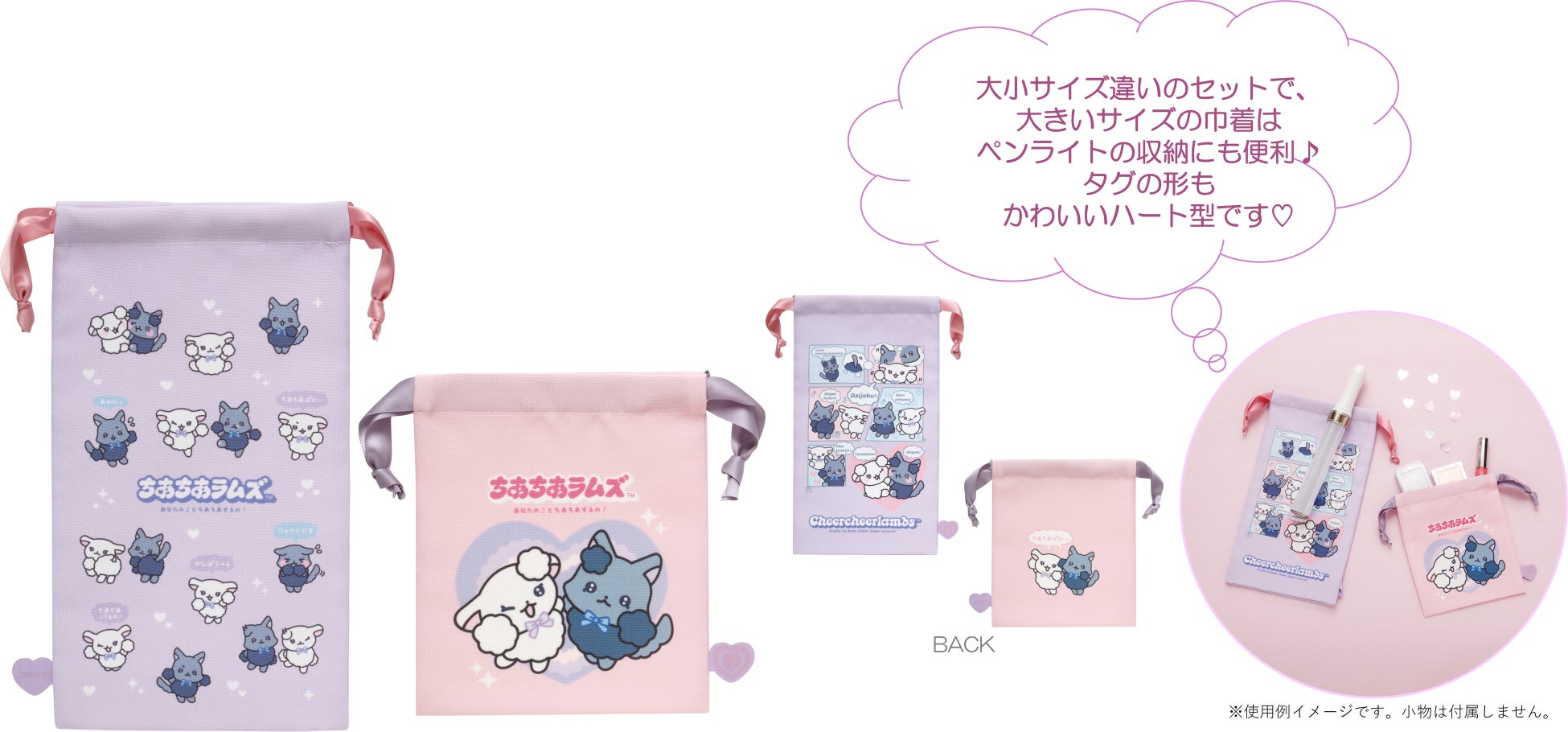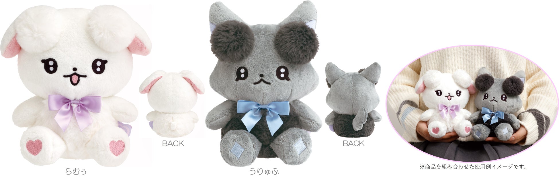 ハート形のカラビナがキュートなぶらさげぬいぐるみやペンライトの収納にぴったりな巾着など、ひつじだらけのラムラムスクールに通う「らむぅ」と「うりゅふ」の、学校生活や推し活にぴったりなアイテムが多数登場します。