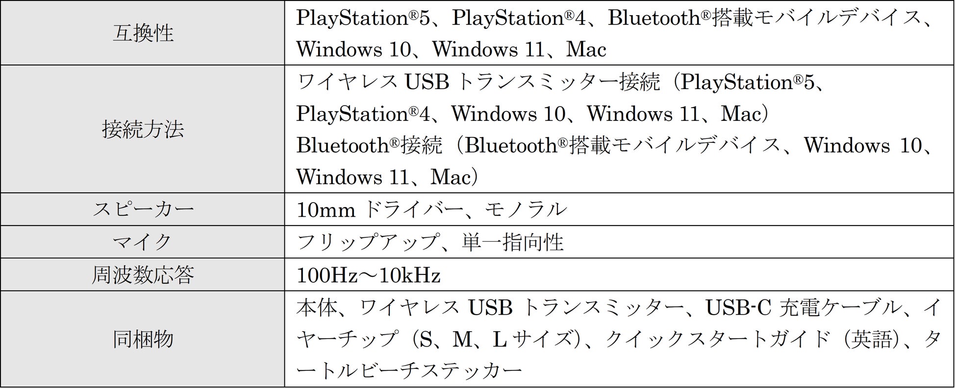 「Recon Air」は、洗練されたシンプルなデザインで、ワイヤレスでクリアなチャットのやり取りが可能な片耳ヘッドセットです。USBトランスミッター接続により、PlayStation®5やPlayStation®4 、パソコンなどに簡単にセットアップすることができます。また、Bluetooth® 5.1技術により、スマートフォンにも同時接続ができるので、ゲーム中の通話やモバイルスマートアシスタントの使用が可能です。