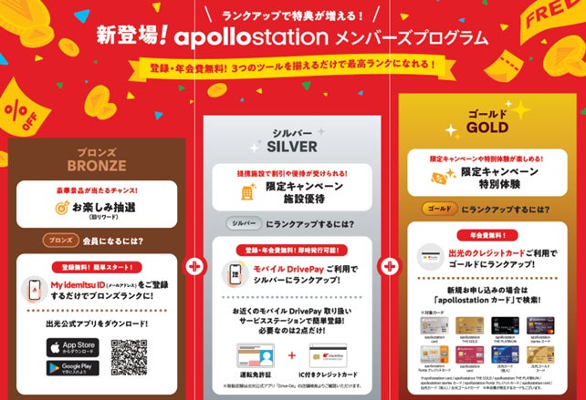 出光興産株式会社(本社:東京都千代田区、代表取締役社長:木藤俊一、以下「当社」)は、出光公式アプリ「Drive On」の会員向けに、ご利用状況に応じて特典が優遇されるランク制サービス「apollostationメンバーズプログラム」を業界で初めて導入しました。