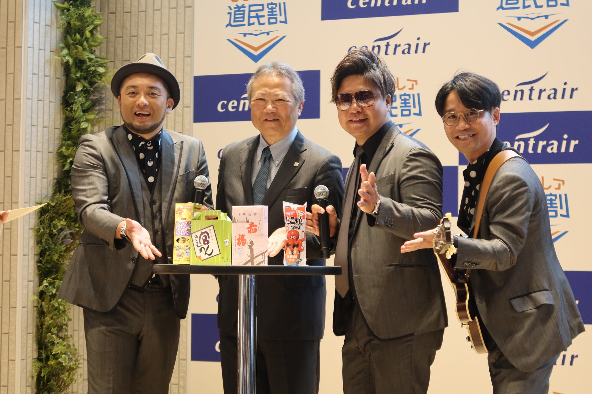 それに先立ち、11 月1 日(金)に北海道札幌市の商業施設「COCONO SUSUKINO」にて、セントレア公式応援サポーター(※)で、北海道で人気の3ピースバンドHAMBURGER BOYS(ハンバーガーボーイズ)を迎え、お披露目イベントを開催いたしました。