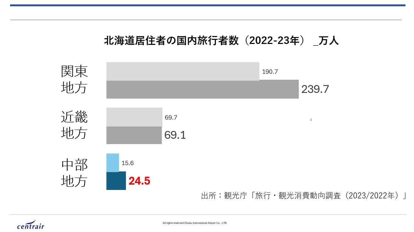 まず、コロナ禍が明け、昨年約3 年7 カ月ぶりに再開した本キャンペーンですが、北海道から中部地方への旅行者数が前年比157%まで増加、近畿地方の99%、関東地方の125%と比較して大幅に増加(※)したことについて、ご来場いただいたみなさまに御礼を申しあげました。