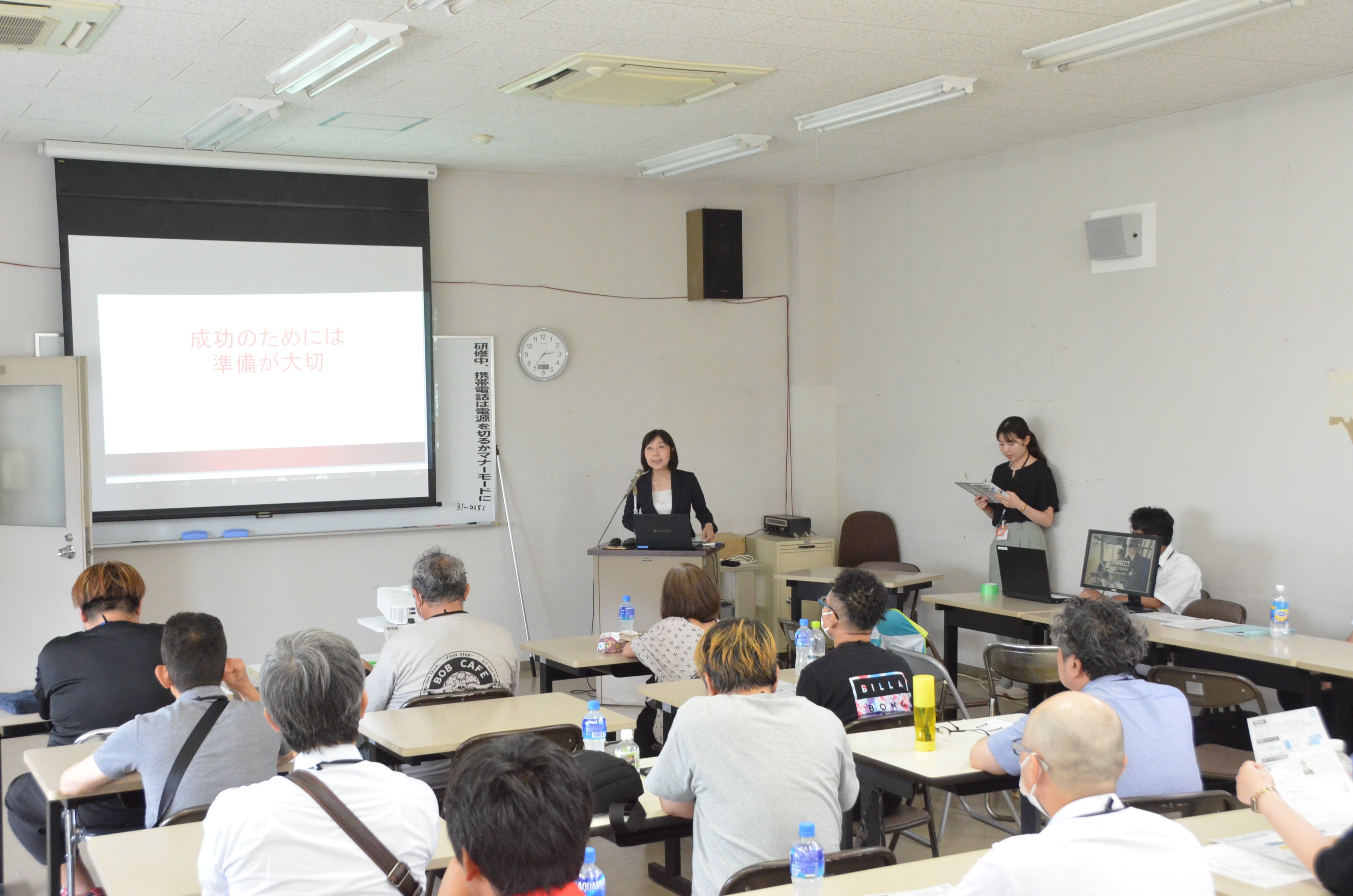 また、就職支援セミナーも行われました。サポートコースの講座を担当するキャリアコンサルタントの先生より、実際の面接に向けた自己分析や業界・企業研究、面接対策などの準備が大切であるとの話がありました。