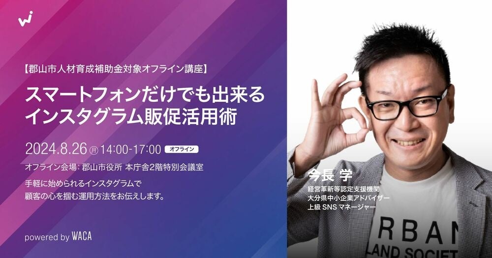【オフライン講座】2024/8/26(月)14:00〜17:00 スマートフォンだけでも出来るインスタグラム販促活用術
