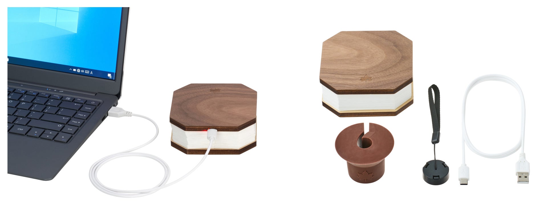 乾電池不要なUSB蓄電式で、USBケーブルでつなげばPCから本体に蓄電できるうえ、片付けの際にはホヤの部分が縮むので収納時にかさばらず持ち運びにも便利です。