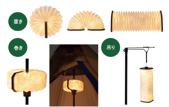 空間を包み込むように照らす暖色と作業に適した白色、さらに暖色と白色が交互にやわらかく点灯する「ゆらぎモード」の搭載しており、アウトドアシーンだけでなくご家庭のインテリアの一部としても活躍します。