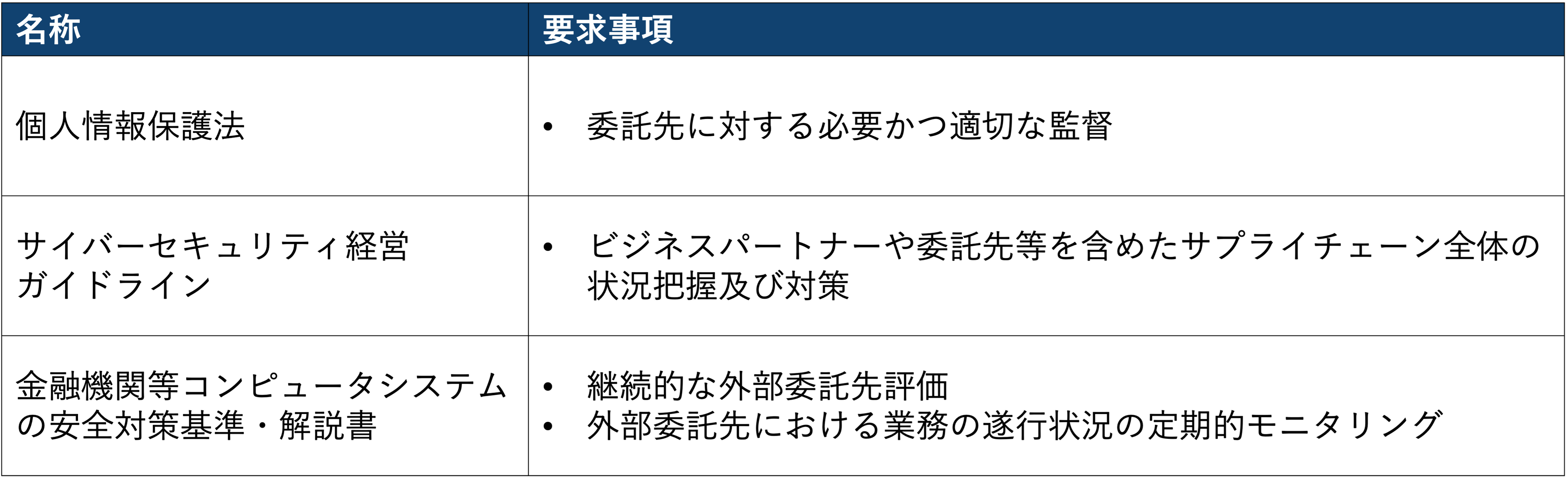 <クラウドサービスの定期評価を要求する主要な法令・ガイドライン>