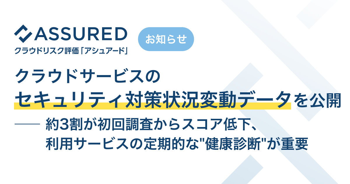 クラウドリスク評価「Assured」、クラウドサービスのセキュリティ対策状況変動データを公開