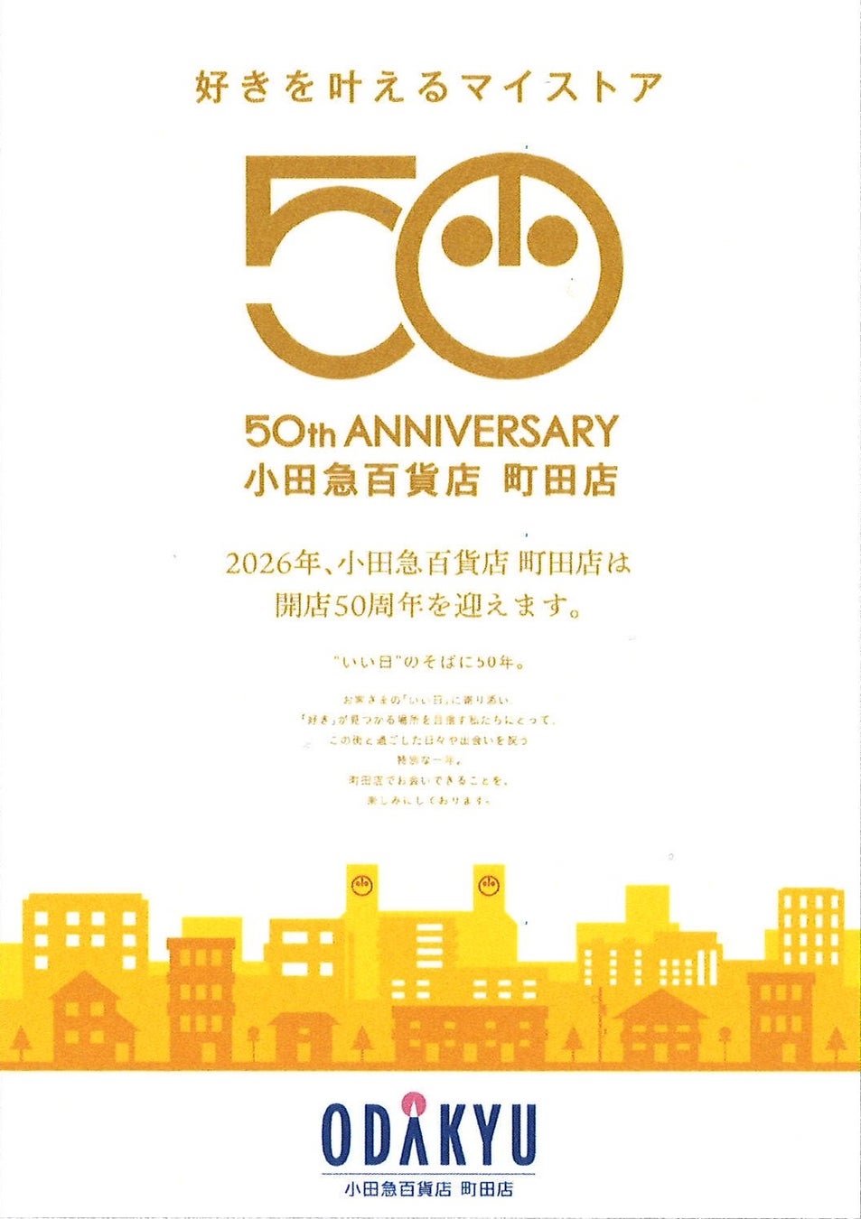 小田急百貨店町田店は、2026年9月に開店50周年を迎えます。地域の皆さまに支えられた50年への感謝を込め、2026年は年間を通じてお客さまや地域とともに楽しめる多彩な企画を実施してまいります。