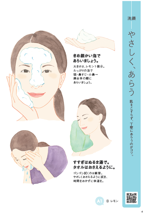 シルバースター登録施設(人に優しい宿)に宿泊される様々なお客さまにも、楽しく、簡単に、肌とからだのお手入れについて興味を持っていただけるように、イラストを大きく、まるで絵本のような感覚で読んでいただけることを目指し作成いたしました。