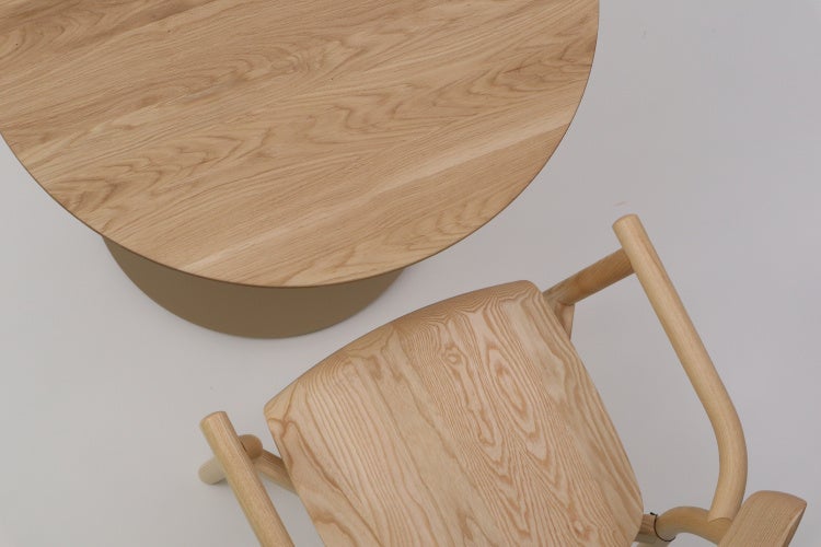 ■メーカー希望小売価格(消費税抜):直径750㎜×高さ720㎜/国産ナラ集成材天板121,500円、他