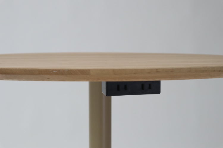 脚部は、さまざまな空間にマッチするよう、すっきりとしたシンプルなディテールに仕上げました。また、快適に働くための機能として、オプションでコンセントを取り付けることが可能です。さらに床の凹凸に対応するアジャスター機能も備えています。