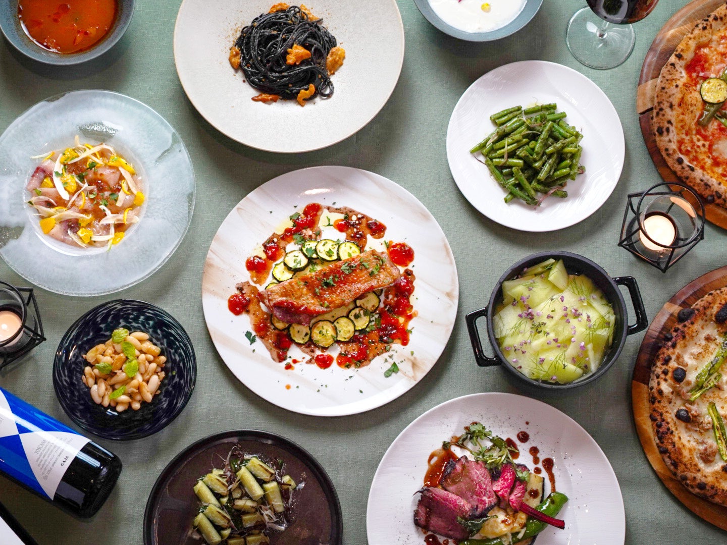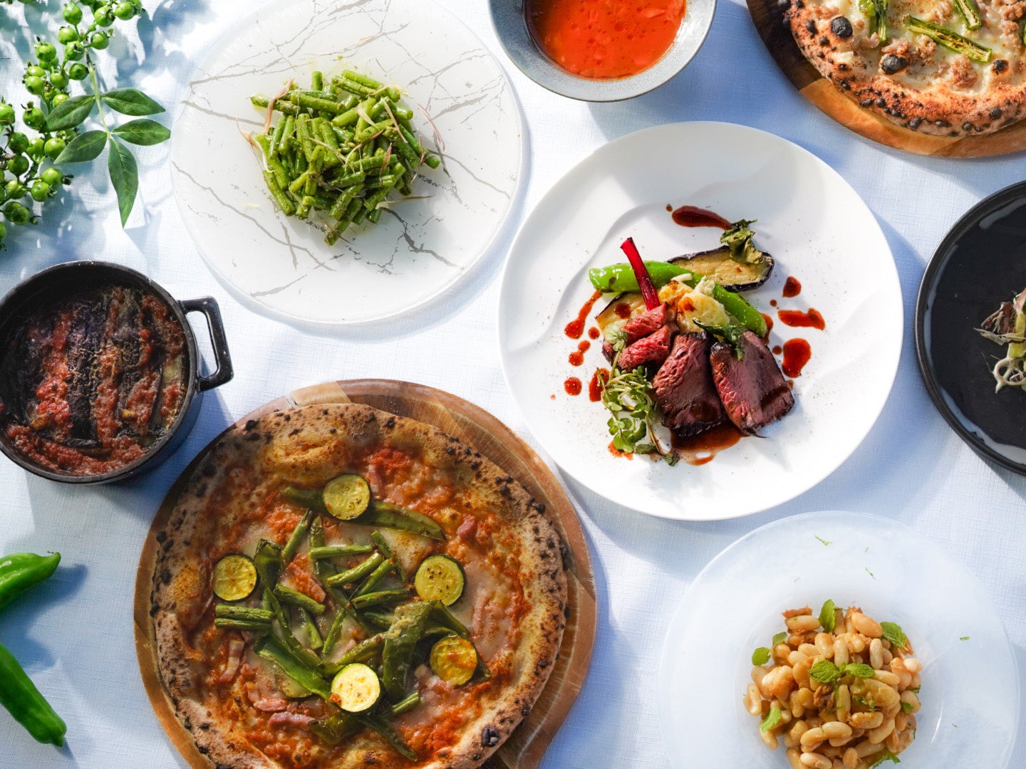 “スローフード”がコンセプトのレストラン「トラットリア・ポンテ 奈良」は、ピザ窯を備えた本格トラットリア。奈良の土地に根差した食材を多く活用した、本物嗜好でありながらシンプルなイタリア料理をご用意しております。デザインコンセプトを「Upside Down Garden」に据え、奈良の穏やかな自然を物語る内装に。木の温かみを感じられるレストランで、繊細に表現される新しい奈良の味をご堪能ください。