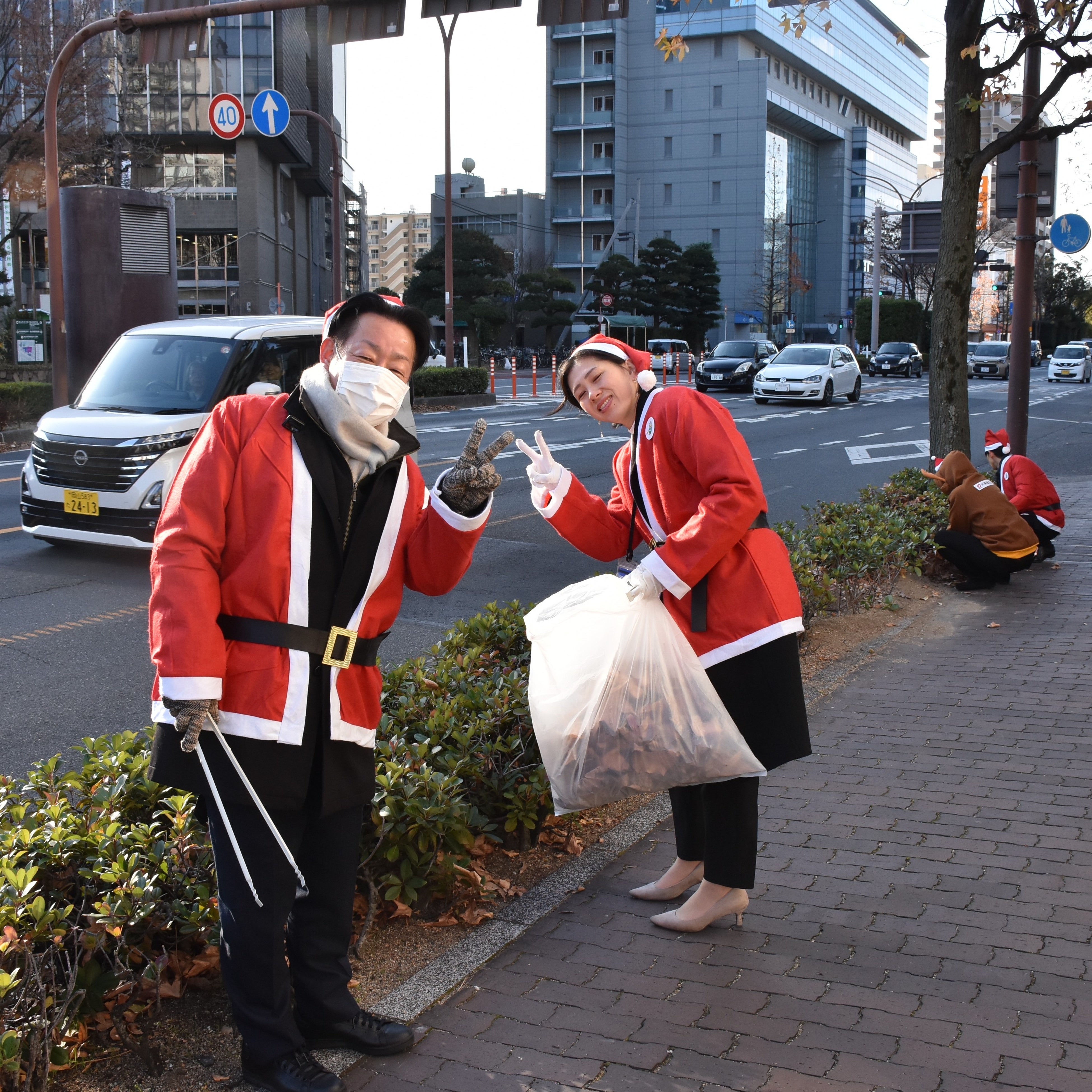 活動後には、サンタ姿で記念撮影を楽しむ姿も見られ、参加者全員が笑顔と清々しい雰囲気に包まれました。両備グループは今後も、地域社会と歩みを共にする企業として、この活動を通じ、笑顔あふれる持続可能なまちづくりに取り組んでまいります。