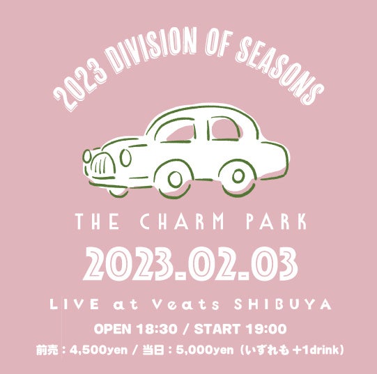 今回のリリースを受けて、2月3日(金)にVeats SHIBUYAにて『THE CHARM PARK 2023 DIVISION OF SEASONS』と題したワンマンライヴを開催。今回の編成はTHE CHARM PARK1人による完全ソロライヴでいつもと違うスペシャルな演出となる。しばらく制作期間に入るため、ワンマンライヴは今回以降しばらくお休みとなるのでお見逃しなく!オフィシャルファンクラブ”Dreamers”では12月27日(火)よりサイトにて会員先行販売を実施する。