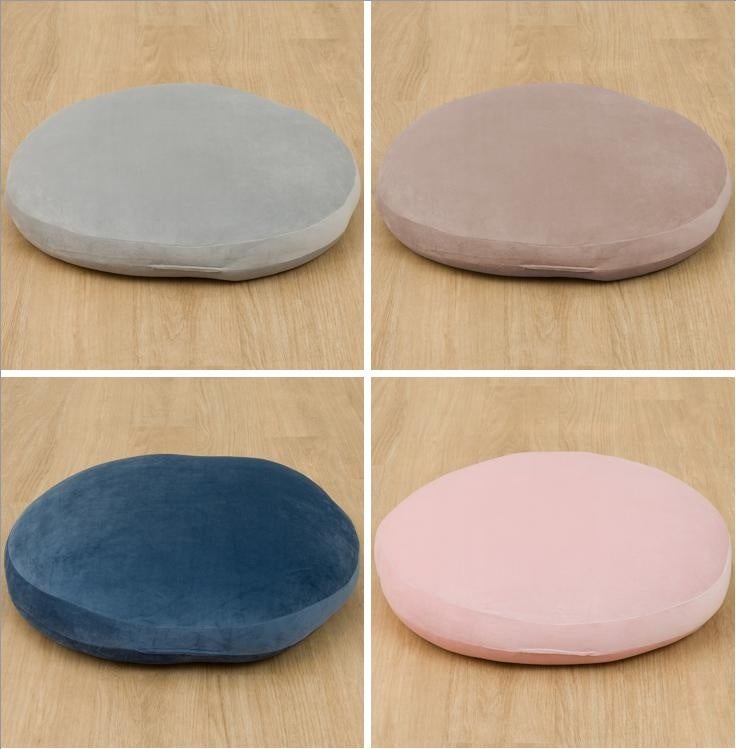 この度、モチモチクッションシリーズの中で最も人気のスタンダードタイプ(直径40cm全3色と直径60cm全4色)の中綿を速乾性に優れたものへ変更し、手洗い可能へと進化しました。