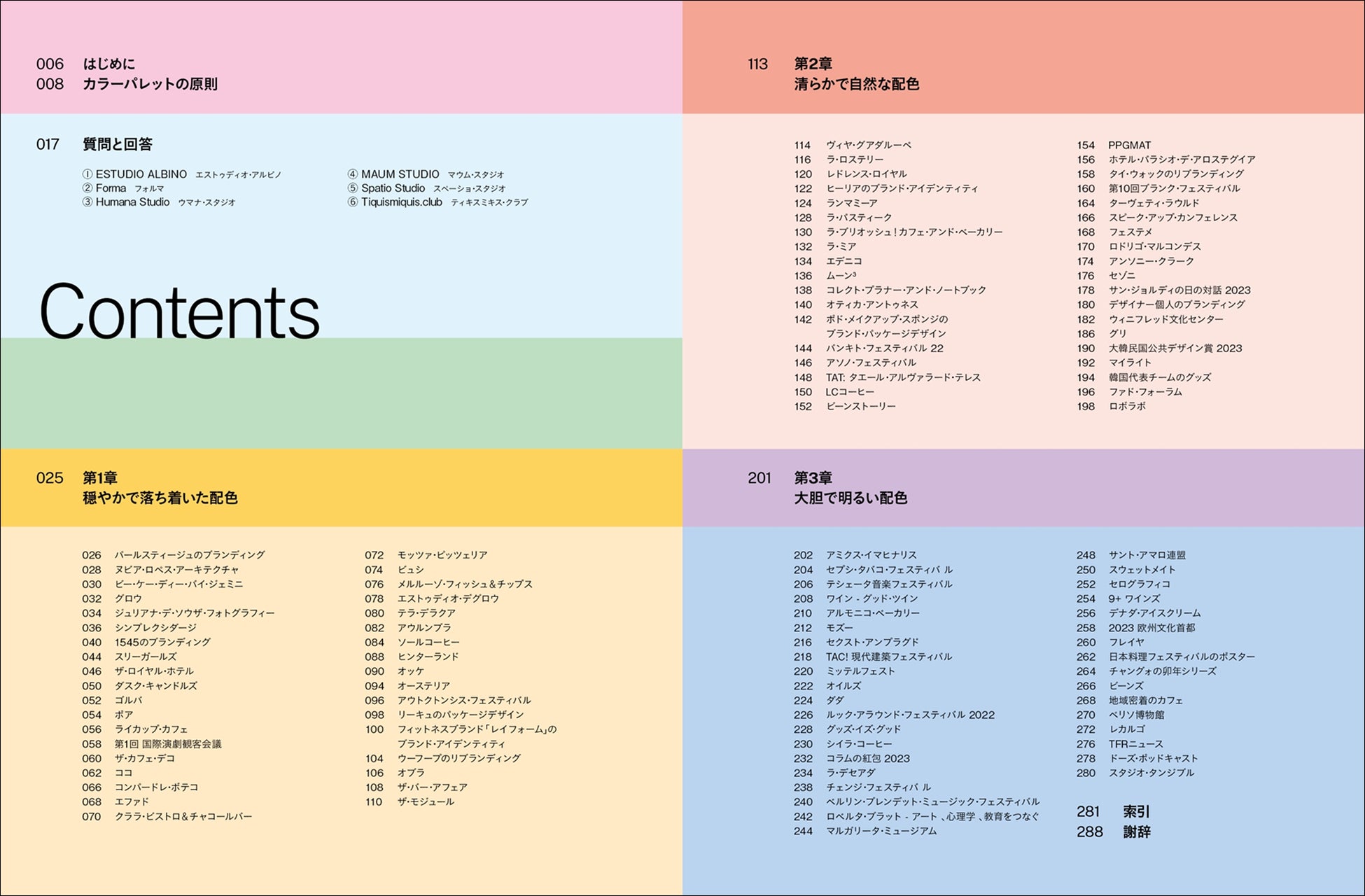 配色が互いに引き立て合いながら調和し、雰囲気が伝わるグラフィック・デザインとなっている108の成功実例を紹介したデザイン・リファレンスブック。巻頭では色の三大要素や、カラーパレットでみる色の関係性など、配色に関する基本的な知識が満載。後半にあるデザインのサンプル紹介では、イメージごとにカテゴリに分けてデザインの実例をたっぷりと紹介。空間広告やデジタルサイネージ、商品のパッケージ、ブランドのグッズや小物など幅広いデザインの実例は、すべてカラー・スキーム付きで解説しているので、実用書としても使えます。