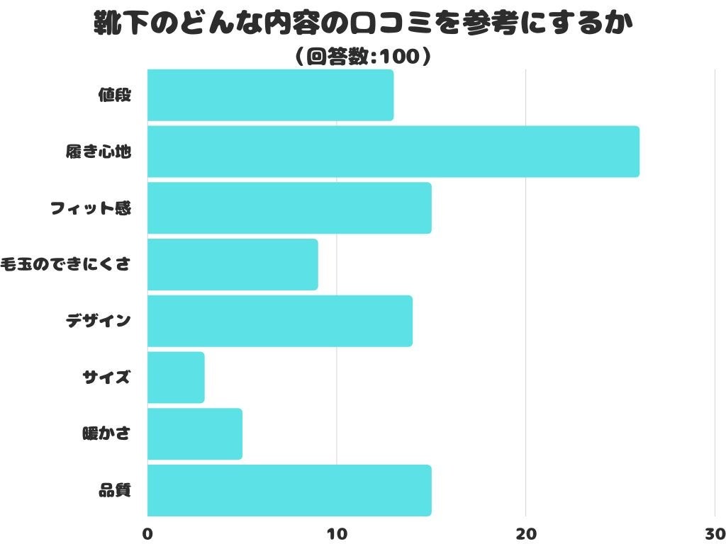 靴下のどんな内容の口コミを参考にするかをアンケートにて調査したところ、1位は「履き心地」でした。