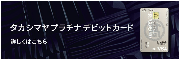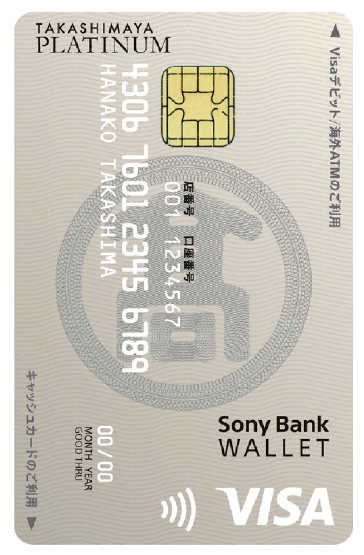 タカシマヤプラチナデビットカードは、「髙島屋のご優待サービス」とソニー銀行のVisaデビット付キャッシュカード「Sony Bank WALLET」が一体になったカードです。
