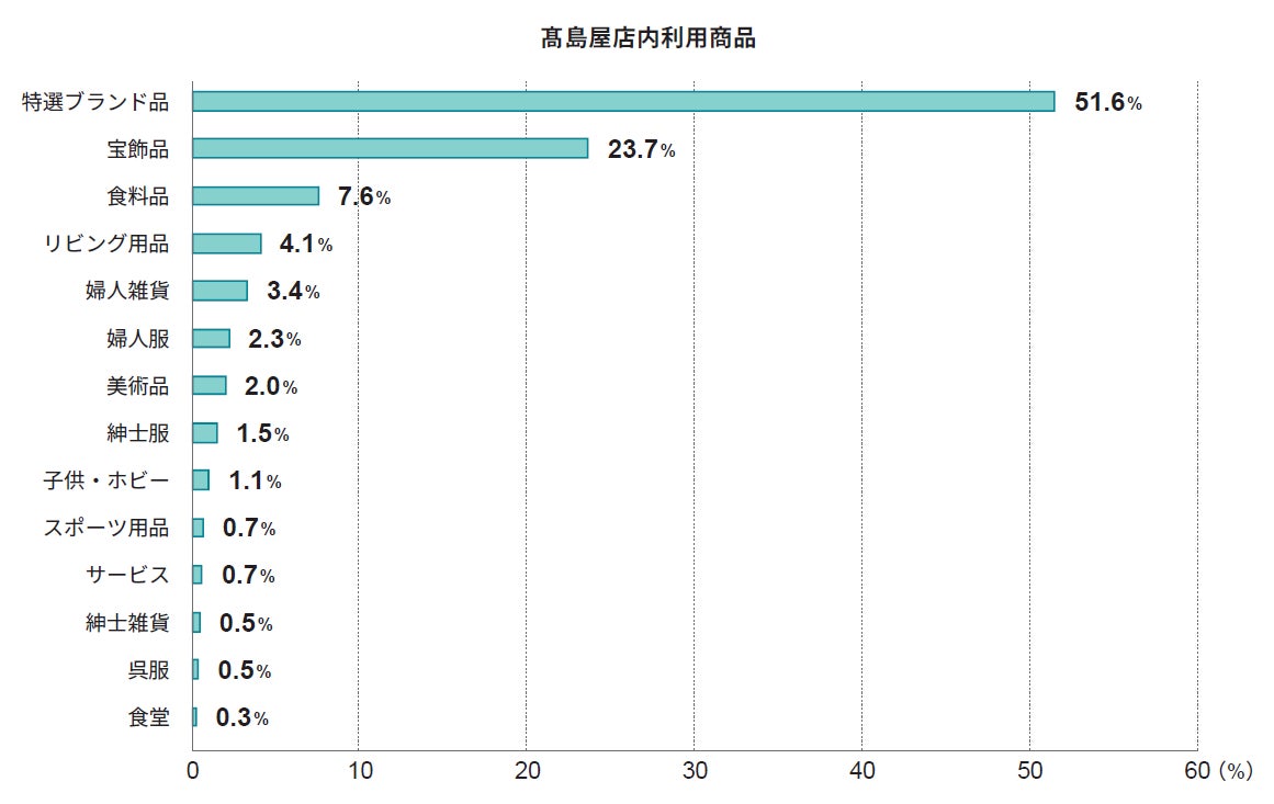 ・ タカシマヤプラチナデビットカードを利用した髙島屋店内における購入商品は特選ブランドや宝飾品などの高額な商品購入での利用が多い。また、カード利用者は平均で年間約18万ポイント(18万円相当)を獲得している。