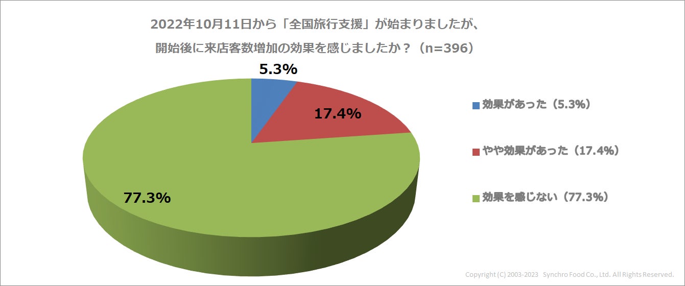 全国旅行支援・Go Toイートでは、あまり集客効果を実感できず