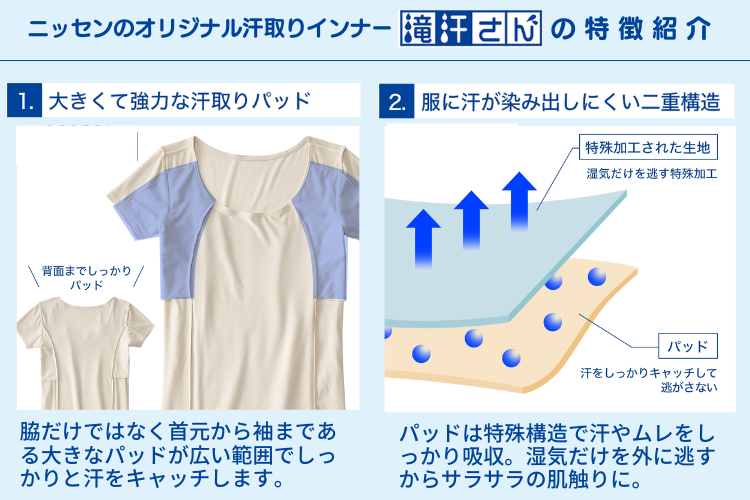 ニッセンオリジナル汗取りインナー『滝汗さん』の特徴
